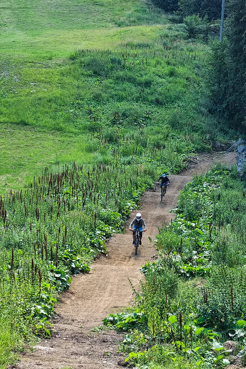 NH DH is a double black line that’s always used in mountain bike downhill competitions. It has bigger jumps, a lot of offcamber and rock garden. For the NH DH, you’ll need a really good bike and full protection equipment. It’s a double black line in the truest sense of the world.