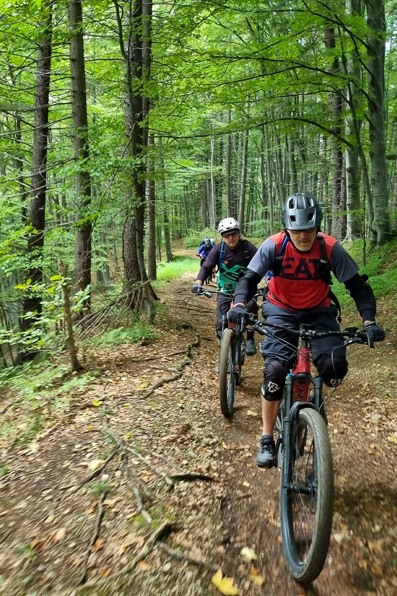 On this half-day mountain bike or e-bike tour, we can have a maximum number of 6 riders. If you have more people that want to join, you’ll want to contact us and organize a larger tour.