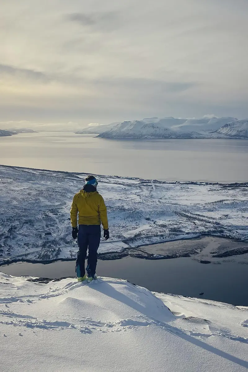 We’ll have 5 days of backcountry guiding with an IFMGA guide. We’ll climb from the sea level to mountains of up to 1,000m, where you’ll ride along the sea, the mountains, and the Northern Lights.